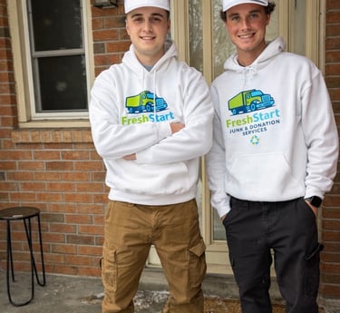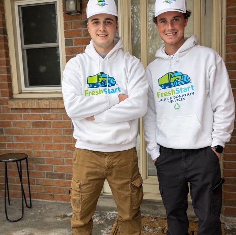 FreshStart Junk & Donation was founded by Ethan Povey and Rudy Boyce, two friends who met at Trent University and set out to build a business that makes a difference. Now operating across the GTA, we provide reliable residential and commercial junk removal with a strong focus on donating and recycling items whenever asked. As owner-operators, we’re committed to honest service, hard work, and helping our customers clear clutter responsibly.
