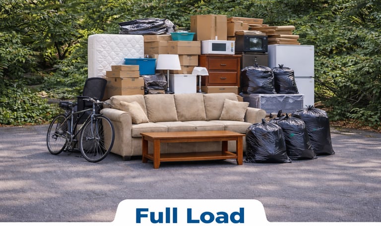 Donation pickups are priced the same as standard junk removal, since loading, hauling, and handling time are the same — but donating helps reduce waste and support local charities.
